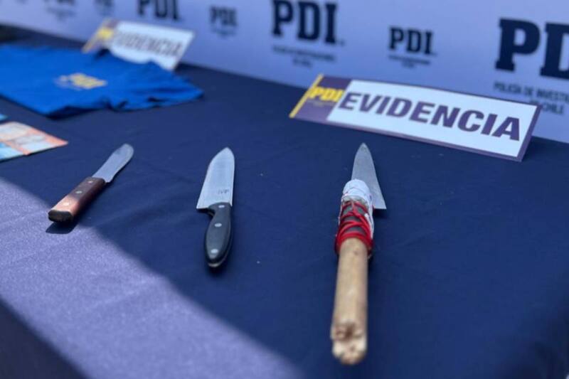 Durante los operativos, los investigadores incautaron una polera azul con la inscripción “Policía de Investigaciones de Chile”, dinero en efectivo, dos teléfonos celulares y tres cuchillos, que habrían sido utilizados para causar lesiones a la víctima durante su cautiverio, quien fue liberada con vida posteriormente en la comuna de Pozo Almonte, presentando lesiones por golpes y múltiples heridas cortopunzantes.