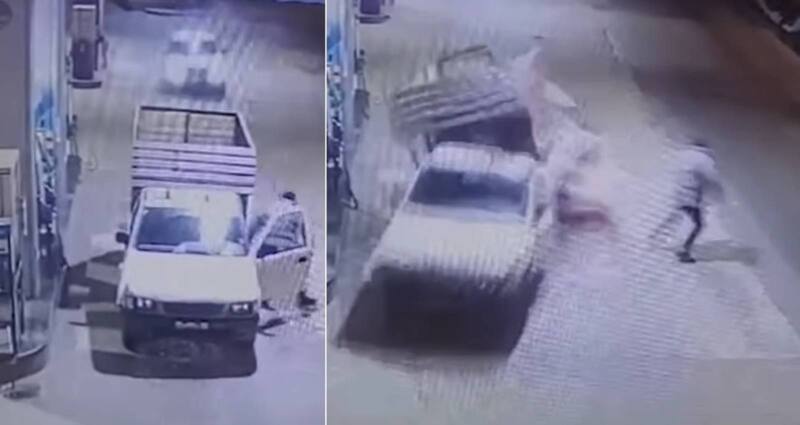 Tal como se puede ver en un video revelado por 24 Horas, el chofer afectado se había bajado de su máquina para cargar combustible. A sólo segundos del impacto, alcanzó a advertir el inminente accidente, por lo que logró zafar milagrosamente.
