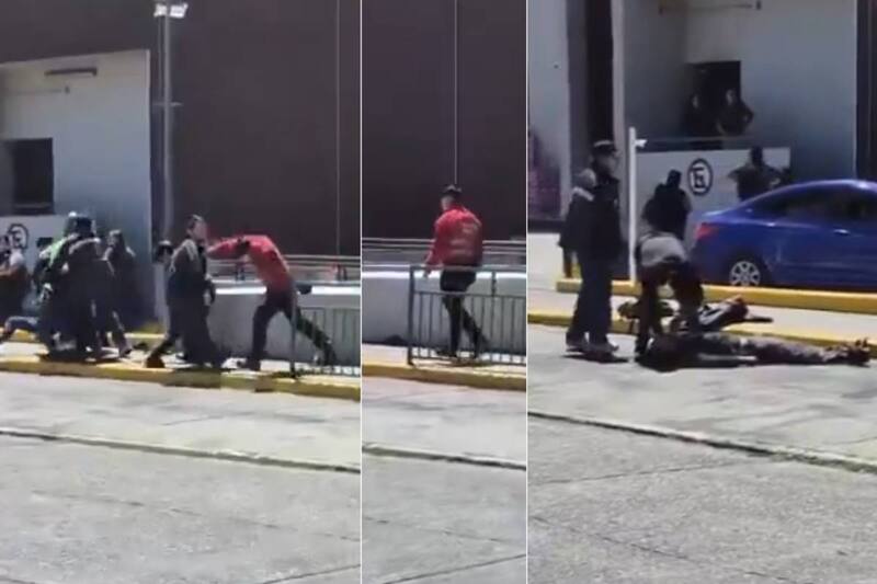 Tal como se puede ver en el registro grabado por un testigo, el trabajador encargado de la seguridad tardó escasos segundos en vencer a su oponente, quien perdió el conocimiento y cayó al suelo.