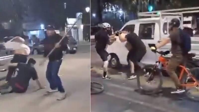 La gresca, que comenzó en la pista de circulación vehicular, se prolongó a la vereda y volvió a su punto de origen. Sin embargo, fue la cobarde irrupción de un sujeto la que generó la molestia de todos los presentes.