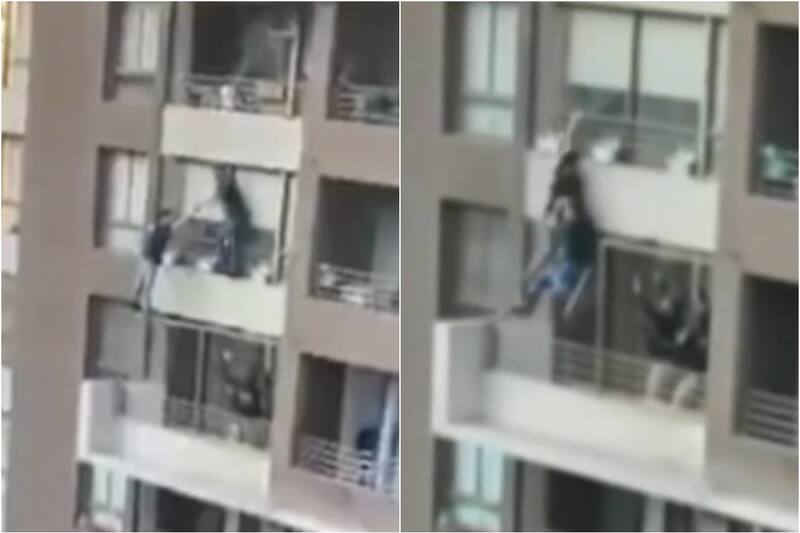En redes sociales se viralizó el video que captó el momento en que un funcionario de la Policía de Investigaciones (PDI) junto con un delincuente casi cayeron desde un noveno piso en medio de un operativo en un edificio en Santiago.