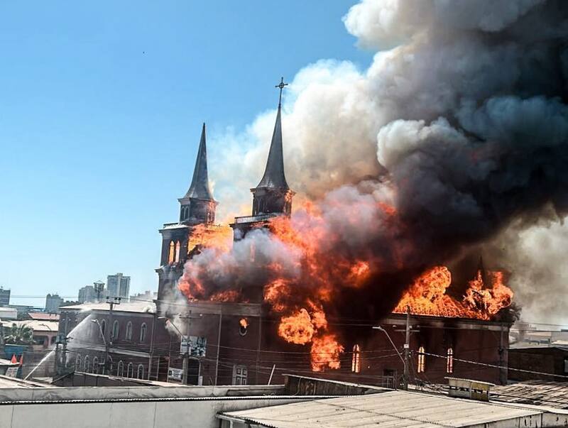 Por Erasmo TauranImpactantes imágenes: Incendio destruye totalmente una histórica iglesia de Iquique