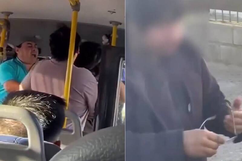 Tal como se puede ver en las imágenes, el conductor golpeó al pasajero y lo expulsó del bus.