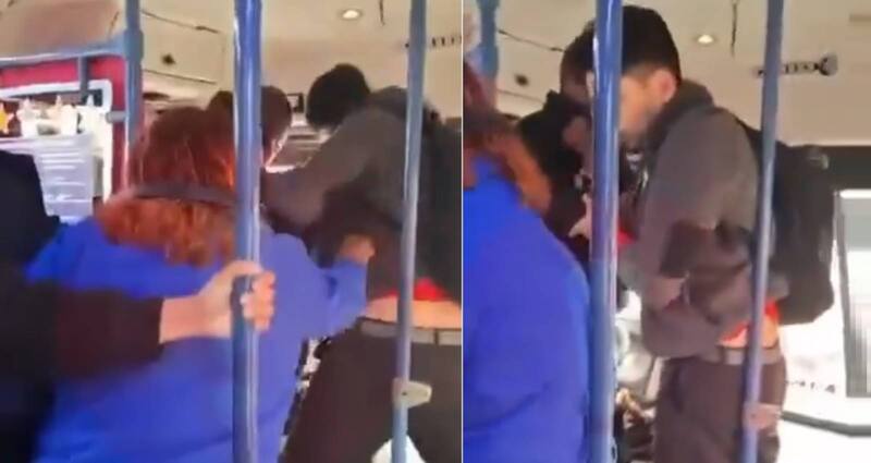 Pasajeras intentaron intervenir para detener los combos entre el joven y el conductor.