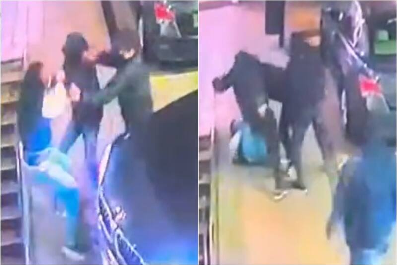 Una cámara de seguridad grabó el momento en que el grupo de antisociales se abalanzó contra la víctima y lo atacaron para quitarle sus pertenencias.