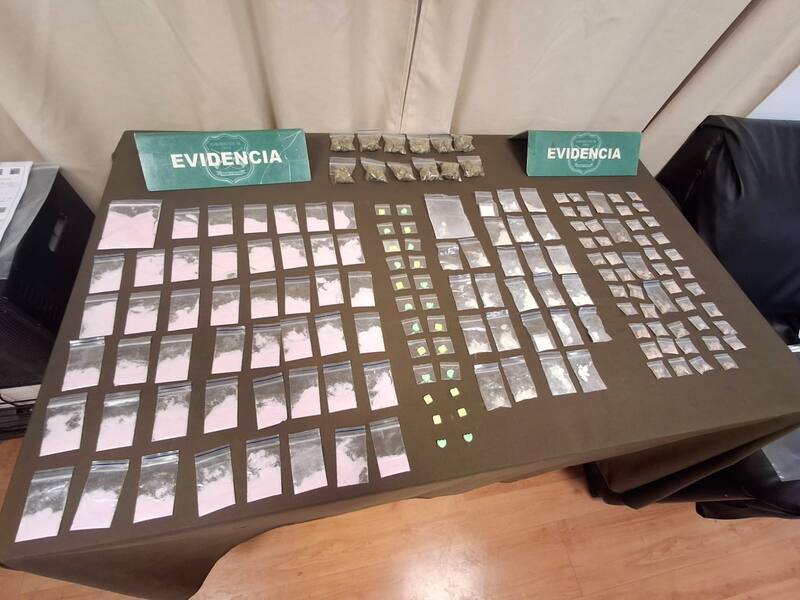 En concreto, las evidencias incautadas fueron: $223.000 en billetes de diversas denominaciones, un billete de 100 dólares, dos máquinas de pago de tarjeta bancaria, tres teléfonos celulares marca iPhone, 12 bolsas contenedoras de sustancia vegetal color verdosa (marihuana), siete bolsas transparentes contenedoras de sustancia orgánica con forma de hongos, nueve bolsas transparentes contenedoras de sustancia color blanco, 47 bolsas transparentes contenedoras de sustancia color rosado y 24 bolsas transparentes con pastillas de color verde en su interior.