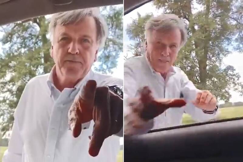 Tal como se puede ver en el viral, Pérez de Arce abrió la puerta del vehículo de Pucheu y lo golpeó.