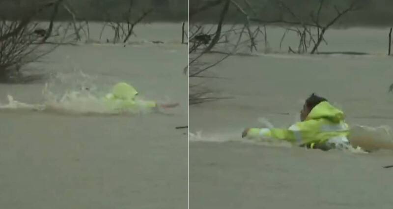 El registro del momento fue grabado por T13 y da cuenta de la arriesgada decisión del funcionario que se dispuso a ayudar a un grupo de afectados.