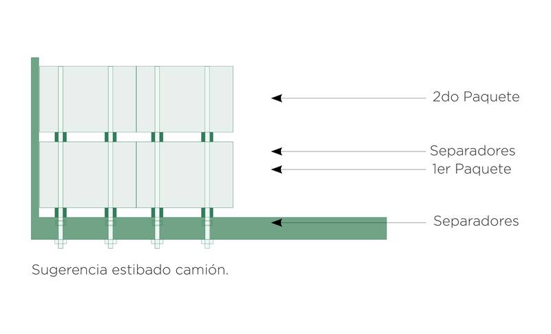 Para asegurar el estibado de carga, se recomienda no colocar más de 2 paquetes en la altura y en lo posible, en forma transversal al eje longitudinal del camión. En el amarre, se debe utilizar el número adecuado de tensores o cuerdas, cuidando que los paquetes queden alineados.