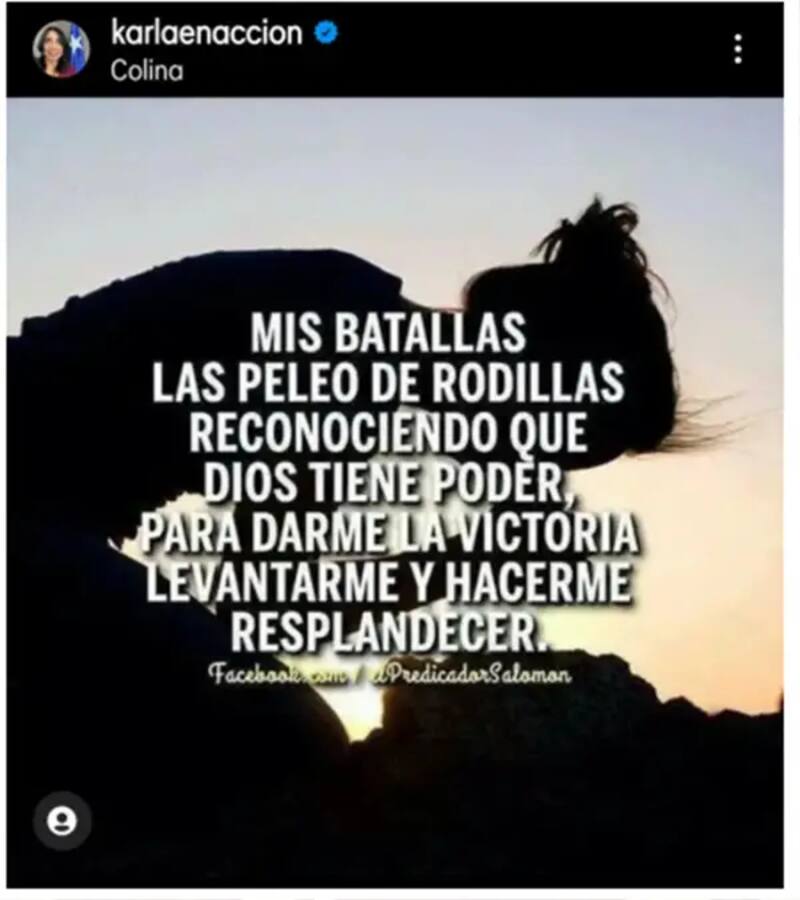 "Mis batallas las peleo de rodillas reconociendo que Dios tiene poder, para darme la victoria, levantarme y hacerme resplandecer", dice la publicación.
