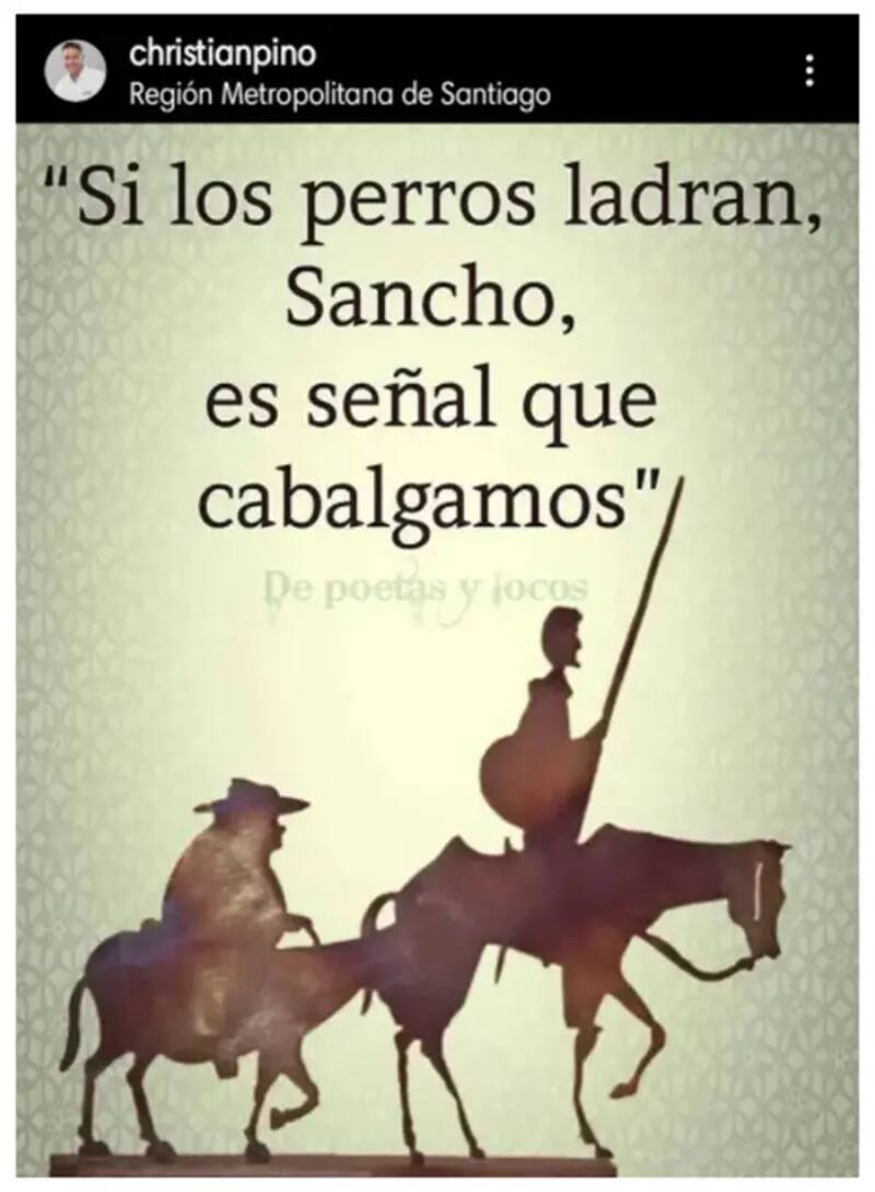 Su pareja, el periodista y candidato a la Cámara Baja, Christian Pino, hizo lo propio: "Si los perros ladran, Sancho, es señal que cabalgamos", escribió.