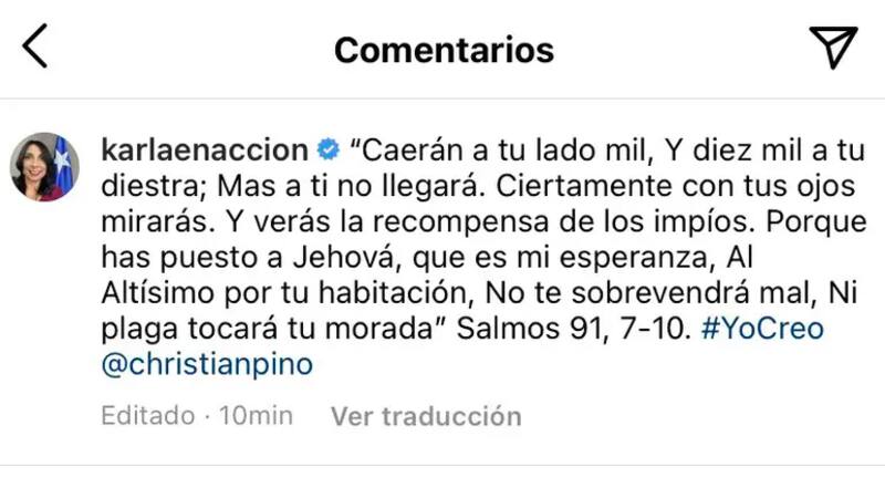 Sin haber aún una declaración oficial de su parte, Karla Rubilar se limitó a dejar un mensaje mediante sus redes sociales. En Instagram, sin ir más lejos, colgó una imagen con un mensaje motivacional: