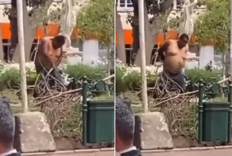 Por Erasmo Tauran“Al menos tiene sus cositas limpias”: Indigente bañándose se roba la película en plena actividad de Gobierno