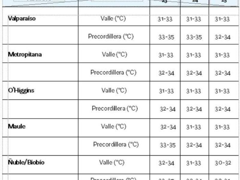 La Dirección Meteorológica de Chile emitió ayer una alerta a raíz de las altas temperaturas que se registrarán los días 23, 24 y 25 de diciembre entre las regiones de Valparaíso y del Biobío.