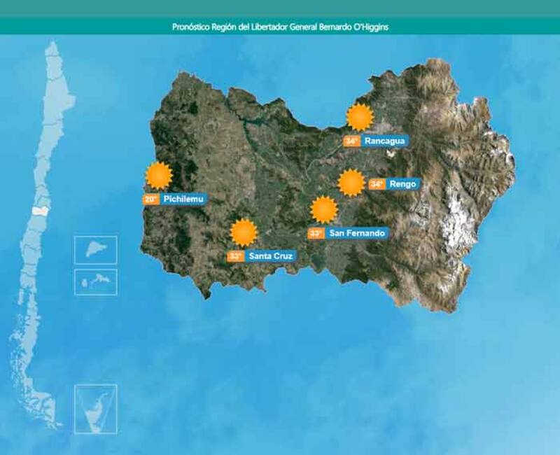 La entidad alertó que las zonas que registarán las máximas serán los valles y zonas precordilleranas.