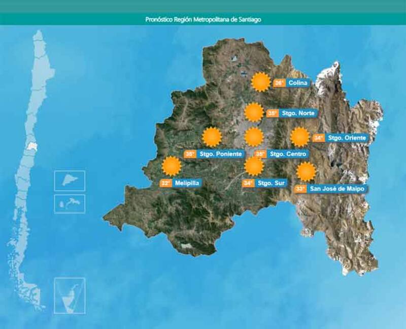 De acuerdo a lo indicado por el mismo organismo, se estima que entre domingo y lunes la temperatura alcance los 35 grados tan al sur como la ciudad de Coyhaique.