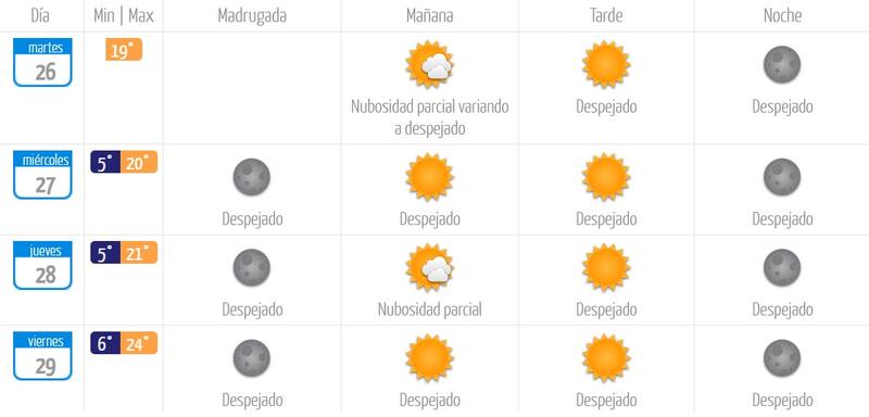 Según información de la Dirección Meteorológica de Chile, durante la jornada de este martes, la máxima será de 19 grados, pero ya el miércoles (20°), jueves (21°) y sobre todo el viernes (24°), el calor se hará sentir en la capital.