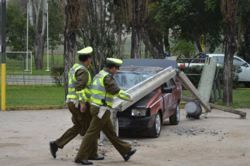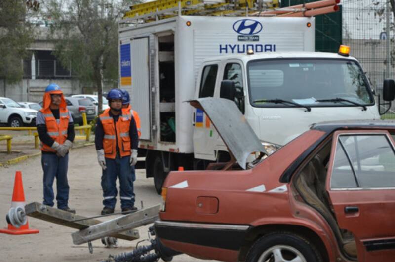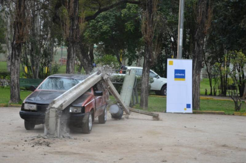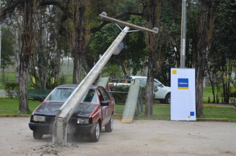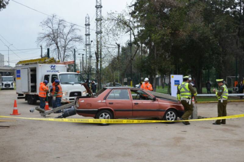 Y decidieron mostrar en el estadio Enersis, ubicado en la comuna de Independencia, cómo es un hecho de esa naturaleza con una demostración real de un accidente de tránsito contra un poste, con las consecuencias tanto personales como eléctricas que genera.