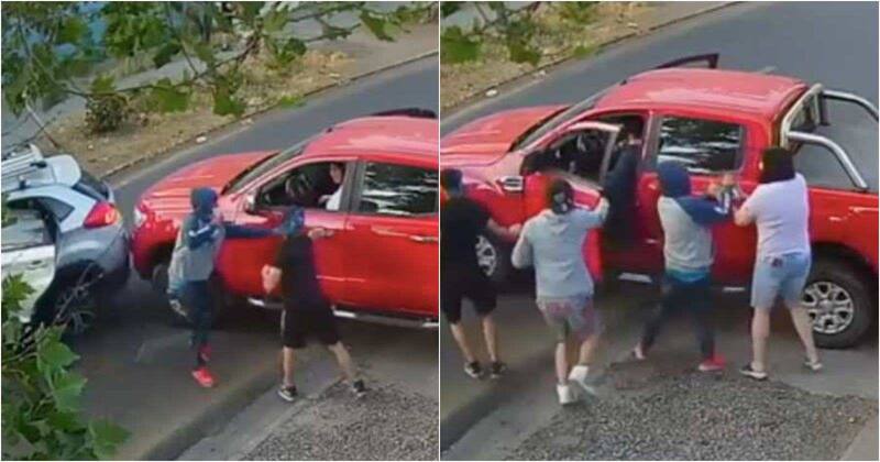 Todo surgió cuando la mujer, identificada como Ana María, iba en su Ford ranger 3.2 patente JLDY25. En ese instante, otro vehículo se colocó delante para quitarle el vehículo, de acuerdo a lo que se puede ver en las imágenes que quedaron registradas en las cámaras de seguridad que habían en el lugar.