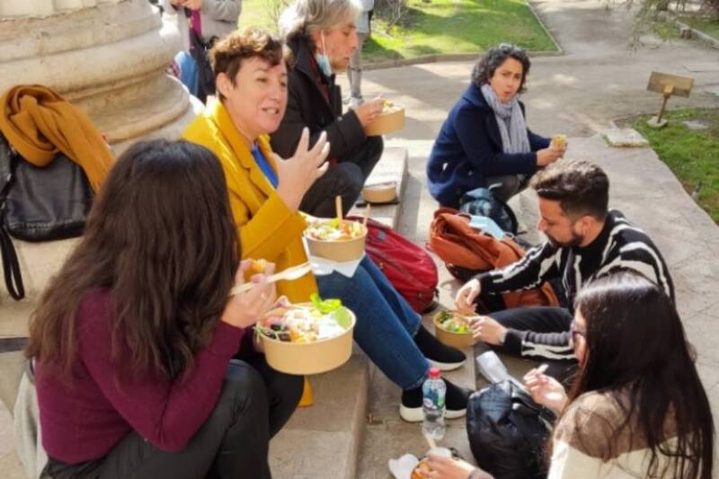 "El trabajo de escribir una Nueva Constitución con amplia participación, en los territorios y con total transparencia tiene costos. ¡No te dejes engañar!", escribió la otrora candidata presidencial, que compartió una serie de fotos del almuerzo junto a sus pares... en el suelo.