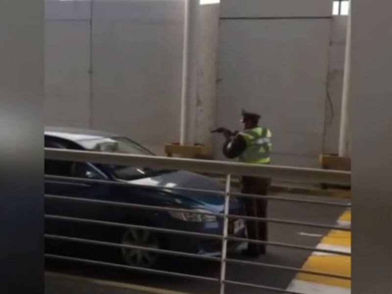 Nuevamente un carabinero debió desenfundar su arma de servicio al fiscalizar al conductor de un automóvil que transportaba ilegalmente a un pasajero en el Aeropuerto Internacional de Pudahuel.