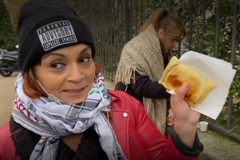 Jocelyn, una emprendedora nacional, llegó hasta el local de votación que le correspondía en Francia con varias empanadas y el respectivo pebre.