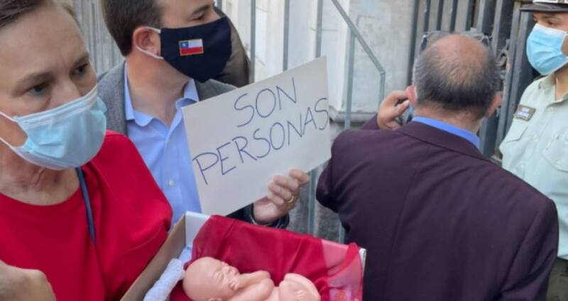 Ayer, la autoridad comunal llegó hasta el exCongreso para entregar un “mensaje simple” a la Convención Constitucional: no al aborto.