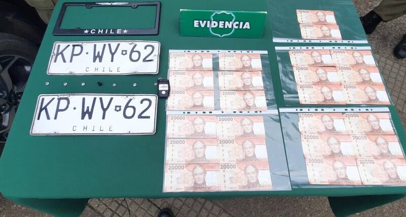 Asimismo, Carabineros encontró en el habitáculo de la conductora $500.000 en billetes de $20.000, todos falsificados.