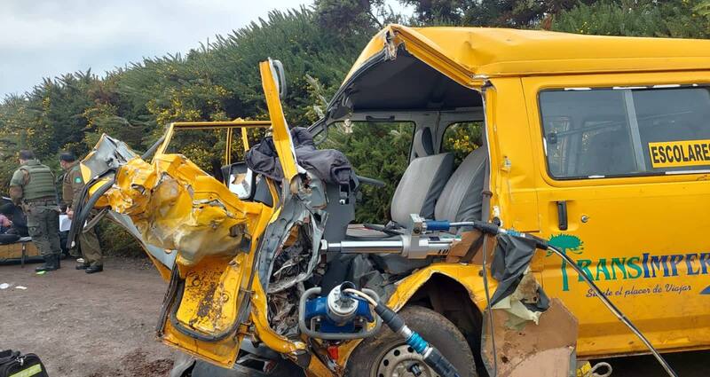 Al llegar al lugar, personal de Carabineros verificó que se trataba de una colisión frontal entre frontal entre los vehículos, afectando a 12 menores de edad y cuatro personas adultas.