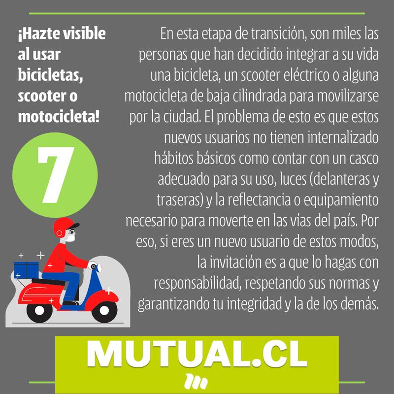 Si en algo estamos de acuerdo es que el flujo de personas y la movilidad en las calles ha aumentado considerablemente. Durante estas últimas semanas ya se notan los tacos, los tiempos más largos de desplazamiento, más bicicletas en las calles y por cierto un mayor número de peatones que circula a sus diferentes puestos de trabajo. Frente a este escenario, Mutual de Seguridad junto a La Cuarta te entregan los 7 consejos para desplazarte con seguridad y así, cuidarte tanto del COVID-19 como de mantener una cultura de seguridad en las vías del país.