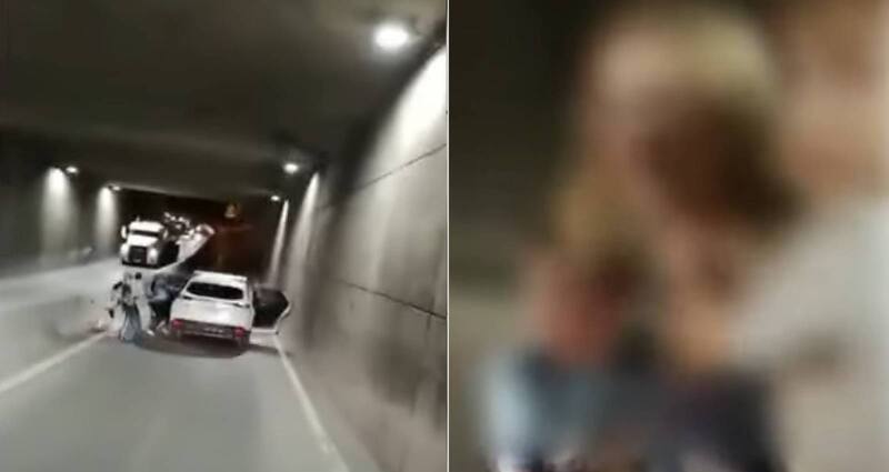 De acuerdo a los antecedentes, el hecho ocurrió la noche del sábado y fue grabado por el copiloto del vehículo que venía justo detrás de la familia afectada. “¡Deja a los niños, conch...!”, intentó intervenir, sin éxito, uno de los testigos.