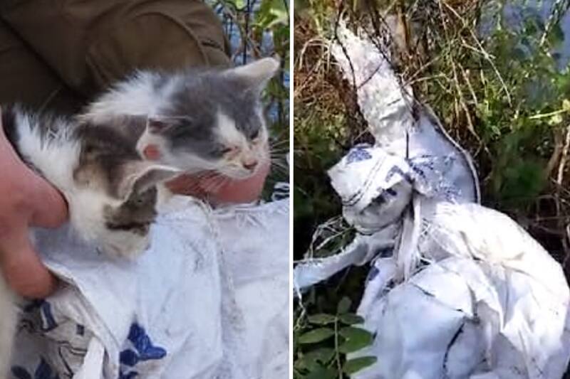 Desalmados intentaron deshacerse de los pequeños felinos atándolos en un saco.