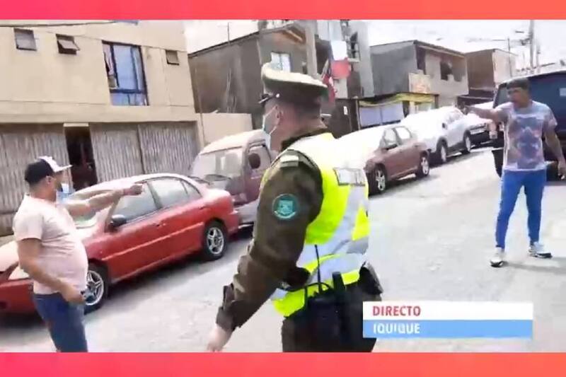 En medio de un despacho, el periodista Stjepan Tarbuskovic dio cuenta del entrevero que sostenía un vecino de la ciudad con un migrante. Todo esto, a pocos metros de personal de Carabineros.