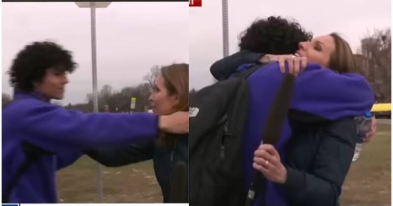 El adolescente corrió a abrazar a su mamá quien estaba trabajando en la zona de los hechos. “Disculpen, mi hijo acaba de llegar y no lo había visto”, dijo la reportera a los conductores.