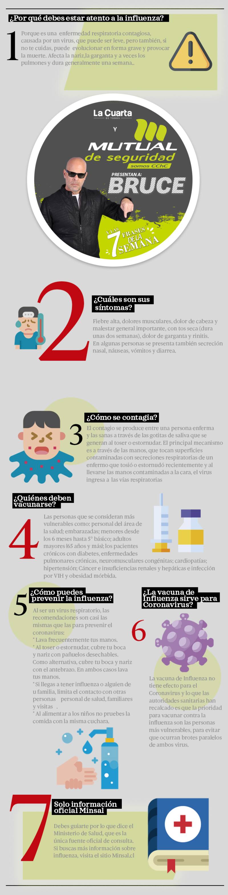 Por eso Mutual de Seguridad y La Cuarta de todos, te informan sobre lo que debes saber de la influenza y cómo podemos ayudar entre todos a prevenir su contagio.