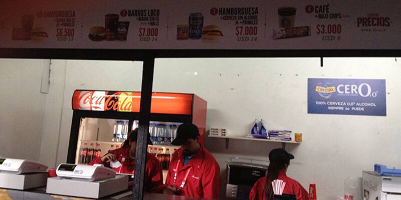Al inicio del segundo tiempo los chiquillos a cargo de vender el maná soltaron a LaCuarta.com que ya no les quedaba ni olor al combo de hamburguesas, que costaban $6.500 ni barros luco a $7500.