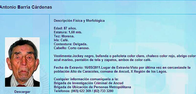 La próxima semana Antonio Barría cumplirá dos años perdido y tendría 89 años. Su familia y la policía tienen claro que su hallazgo es tremendamente difícil, sobre todo porque ya no lo buscan intensamente como en los primeros días.
