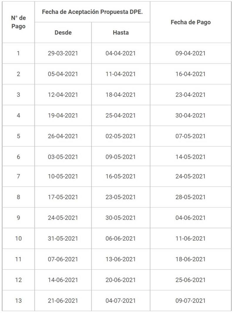 Este pago podrá ser recibido por los cotizantes o empleadores que acepten la propuesta de devolución, en un plazo que varía entre 5 a 10 días hábiles, de acuerdo al siguiente calendario de pago: