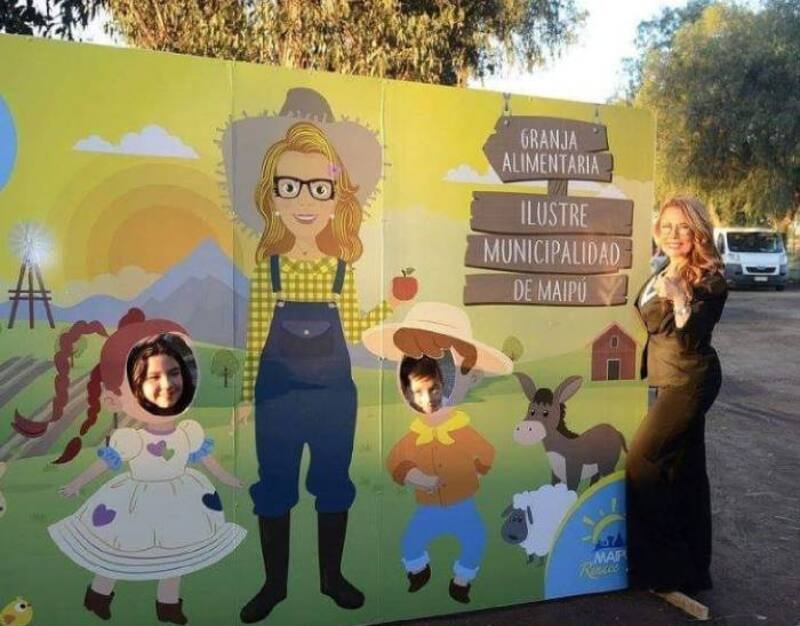 Niños de Maipú se pueden fotografiar junto a la caricatura de la alcaldesa.