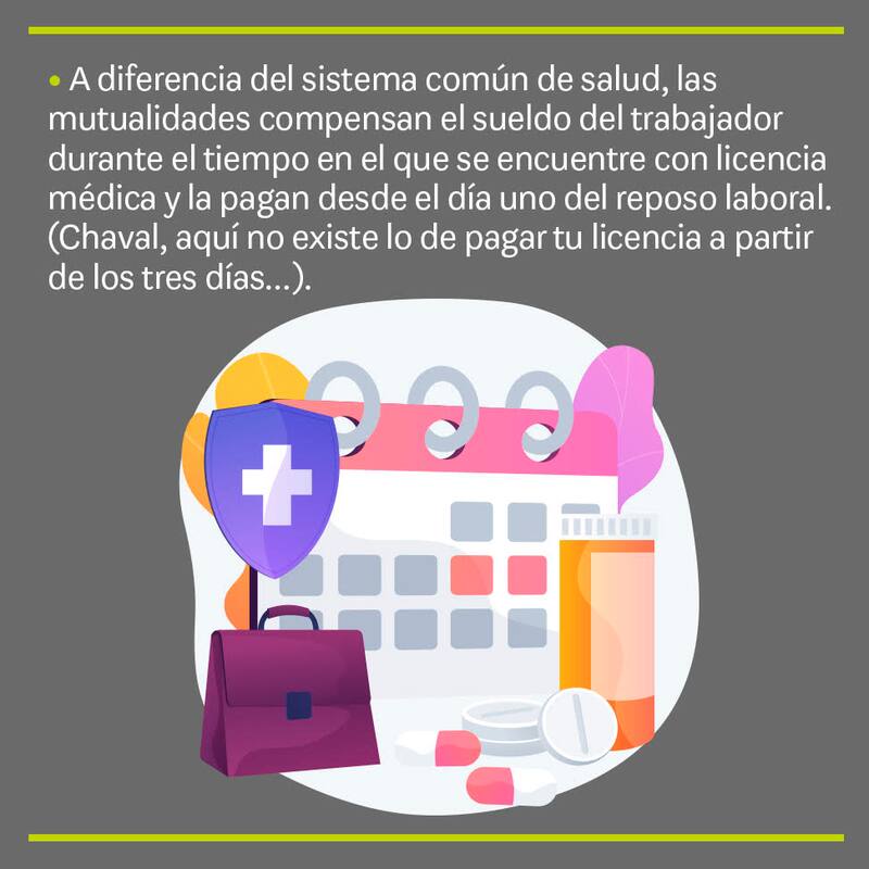 Esto sí que no lo deben olvidar mis alumnos: si sufres un accidente laboral, las mutualidades costean todo el tratamiento, medicamentos y recuperación, sin copago y sin exclusiones (además, no tiene límite de gastos). Y en el caso que lo amerite, se hace cargo de las indemnizaciones y sus respectivas pensiones.