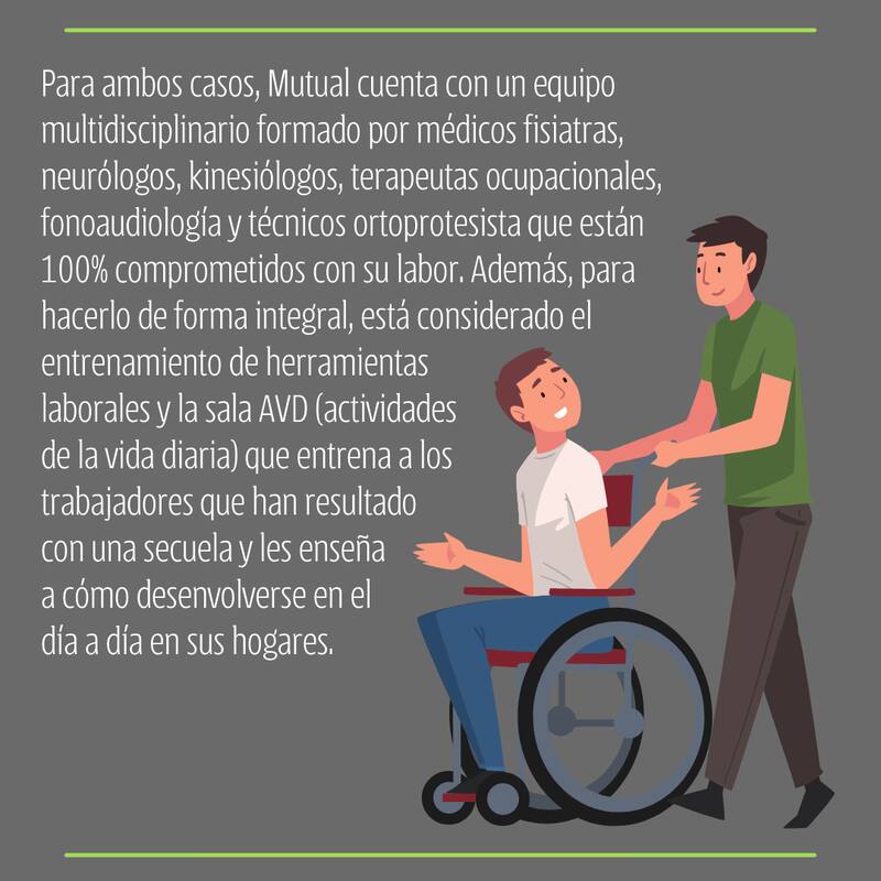 Estamos claros que, si sufrimos un accidente laboral, de trayecto o enfermedad profesional, son las mutualidades las que te dan la cobertura médica y económica necesaria, pero, además, si tu accidente lamentablemente provocó lesiones o secuelas que requieran de tratamiento específico, las mutualidades se hacen cargo al 100% de éstas y entregarán la rehabilitación necesaria hasta completar tu recuperación. Esto incluye –dependiendo el caso y según corresponda– medicamentos; prótesis, aparatos ortopédicos y su reparación; rehabilitación física, psicológica y reeducación profesional, los gastos de traslado y cualquier otro que sea necesario para el otorgamiento de estas prestaciones. ¡Esto sí que flipa mis chavales!