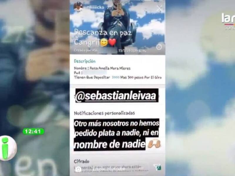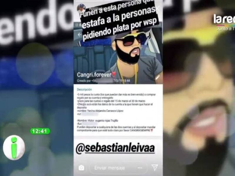 A través de redes sociales, Nicolás denunció a distintas cuentas anónimas que piden dinero a nombre de Sebastián Leiva. "Tiene que depositar 2000 mas 300 pesos por el giro", reza uno de los mensajes que se viralizó en Instagram y que corresponden a una estafa virtual.