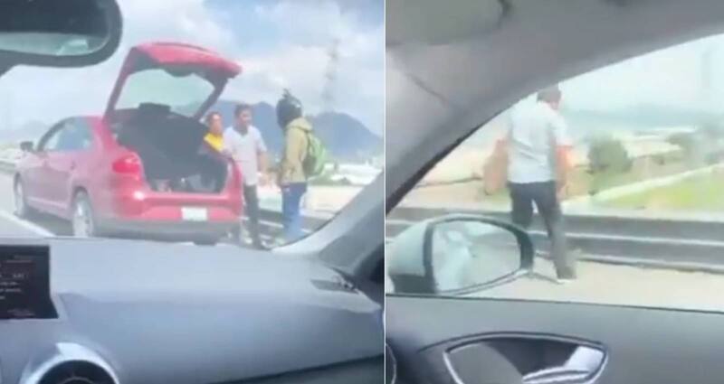 Tal como se puede apreciar en las imágenes, el motorista lanza un primer golpe en contra del sujeto que viajaba junto a su pareja. En cuestión de segundos, el agredido se transformó en agresor y empuja al trabajador desde lo alto de un puente vehicular, esto en la localidad Ejidal San Isidro, en el municipio de Cuautitlán Izcalli, Estado de México.
