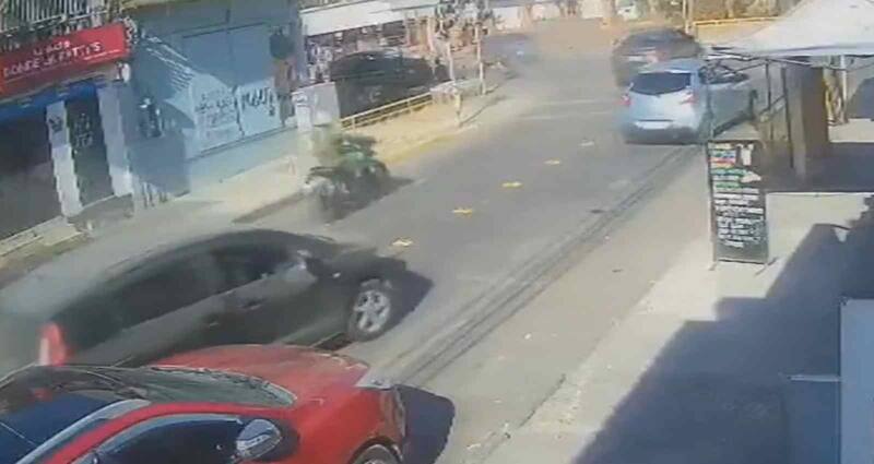 Segundos más tarde, el mismo vehículo impactó a un motorista de Carabineros, sin detener su huida y haciéndose espacio entre los autos que transitaban a plena luz del día.