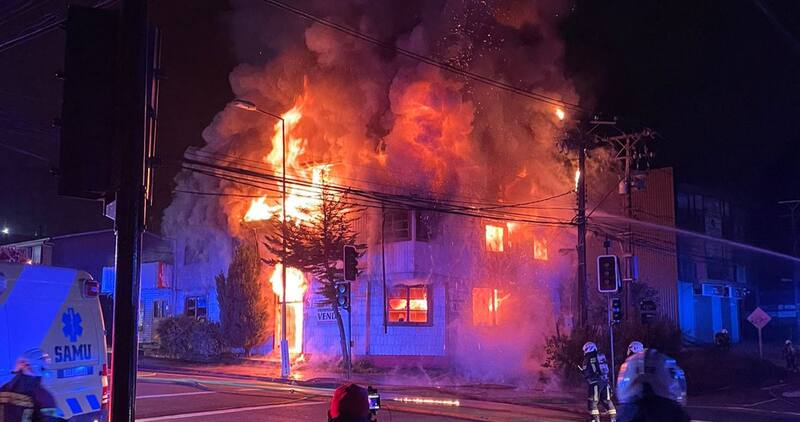 Por Ariel Cornejo GonzálezIncendio consumió por completo un hospedaje en Puerto Montt y provocó corte de energía eléctrica