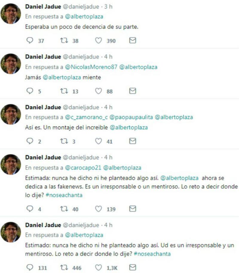 A primera hora de este lunes, el jefe comunal salió a aclarar la situación. "Estimado: nunca he dicho ni he planteado algo así. Ud es un irresponsable y un mentiroso. Lo reto a decir donde lo dije? #noseachanta", escribió.