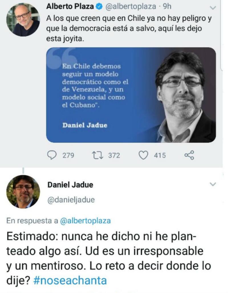 "Irresponsable, mentiroso y chanta": la furia de Daniel Jadue con Alberto Plaza por fake news sobre Venezuela