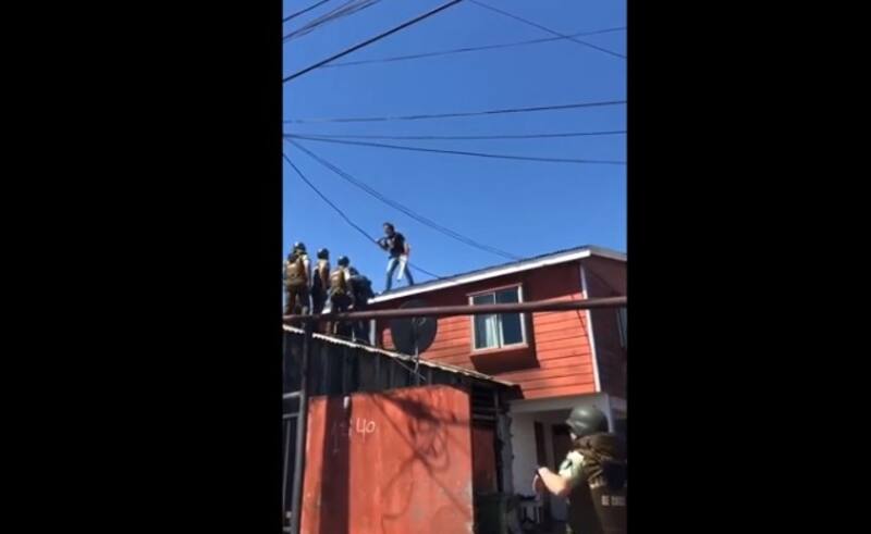 Joven se enfrentó a palos con carabineros en el techo de una casa