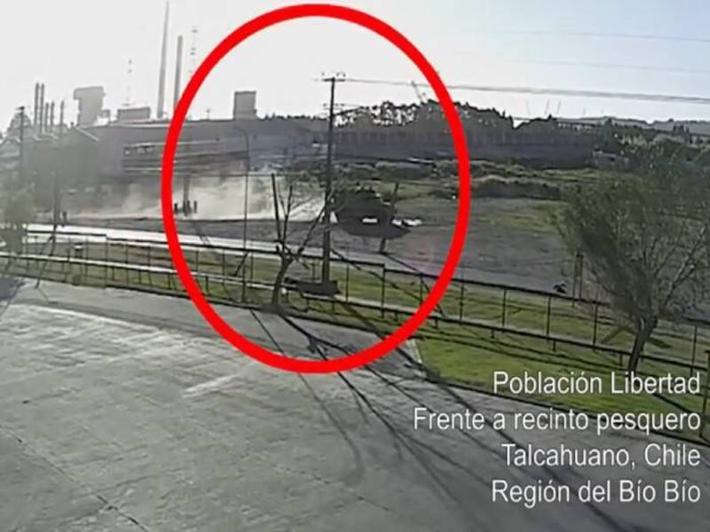 Las imágenes muestran cómo una patrulla de la Armada se sale de la calzada siguiendo a un grupo de personas. El vehículo atropelló una de ellas. Se trataría de Rebolledo, quien falleció producto del impacto.
