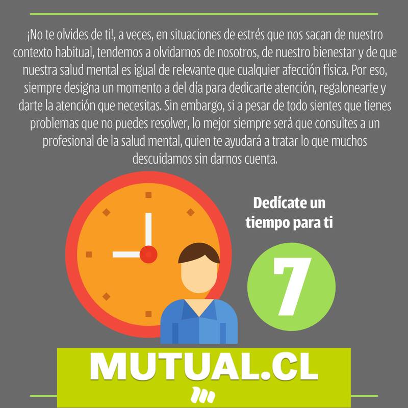 Este domingo 10 de octubre se celebra el Día Mundial de la Salud Mental, conmemoración impulsada por la Organización Mundial de la Salud para contribuir a la toma de conciencia acerca de los problemas de salud mental y erradicar los mitos y estigmas en torno a este tema. En ese contexto y para conmemorar este día, Mutual de Seguridad junto a La Cuarta te comparten algunos consejos que te ayudarán a mejorar tu estado anímico con simples acciones.